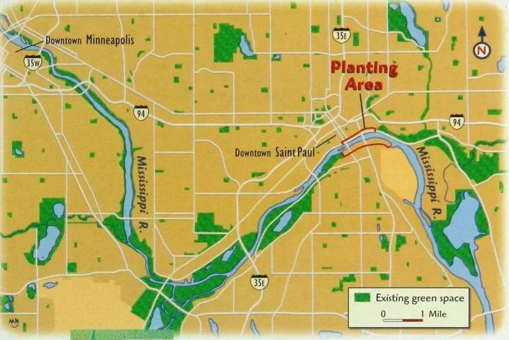 Our story began in 1995 with a single volunteer project along the Mississippi River in Saint Paul, called Greening the Great River. The project was driven by a passionate idea to revitalize a stretch of land known as the Mississippi River Flats —an industrial and business zone across the river from downtown. The idea was sparked by numerous community organizations and individuals, including the former St. Paul Foundation (now called the Saint Paul & Minnesota Foundation), and Ellen Brown, a management consultant who brought attention to the many concerns related to riverfront development in St. Paul. With the strong support of then newly elected Mayor Norm Coleman, the idea quickly took root and began to flourish.